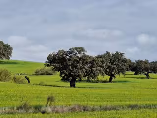 Dehesa de Los Pedroches ubicada entre los municipios de Villanueva de Córdoba y Pozoblanco, donde se produjo el corte de un cable de fibra por un camión que dejó sin telefonía e Internet a la comarca. - BLUEBIRD