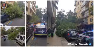 La Policía Local de Granada ha informado en su perfil oficial de la red social Twitter de que el desprendimiento de un árbol en la céntrica calle Melchor Almagro ha sido provocado por "las rachas de viento", sin heridos, y que los agentes han procedido a regular el tráfico hasta su retirada, para lo que han acordonado la zona. Ha pedido precaución a peatones y conductores ante el temporal.
