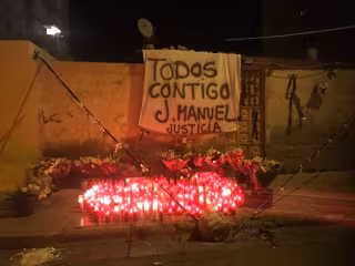Los vecinos han colocado velas y flores en el lugar donde ocurrieron los hechos junto a una pancarta en la que piden justicia para el joven, José Manuel M., y en la que puede leerse "todos contigo".