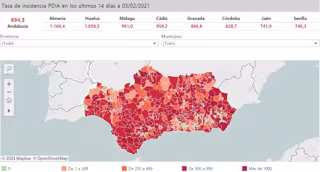 Mapa de incidencia del Covid-19 en Andalucía por municipios a 3 de febrero de 2021 - JUNTA DE ANDALUCÍA