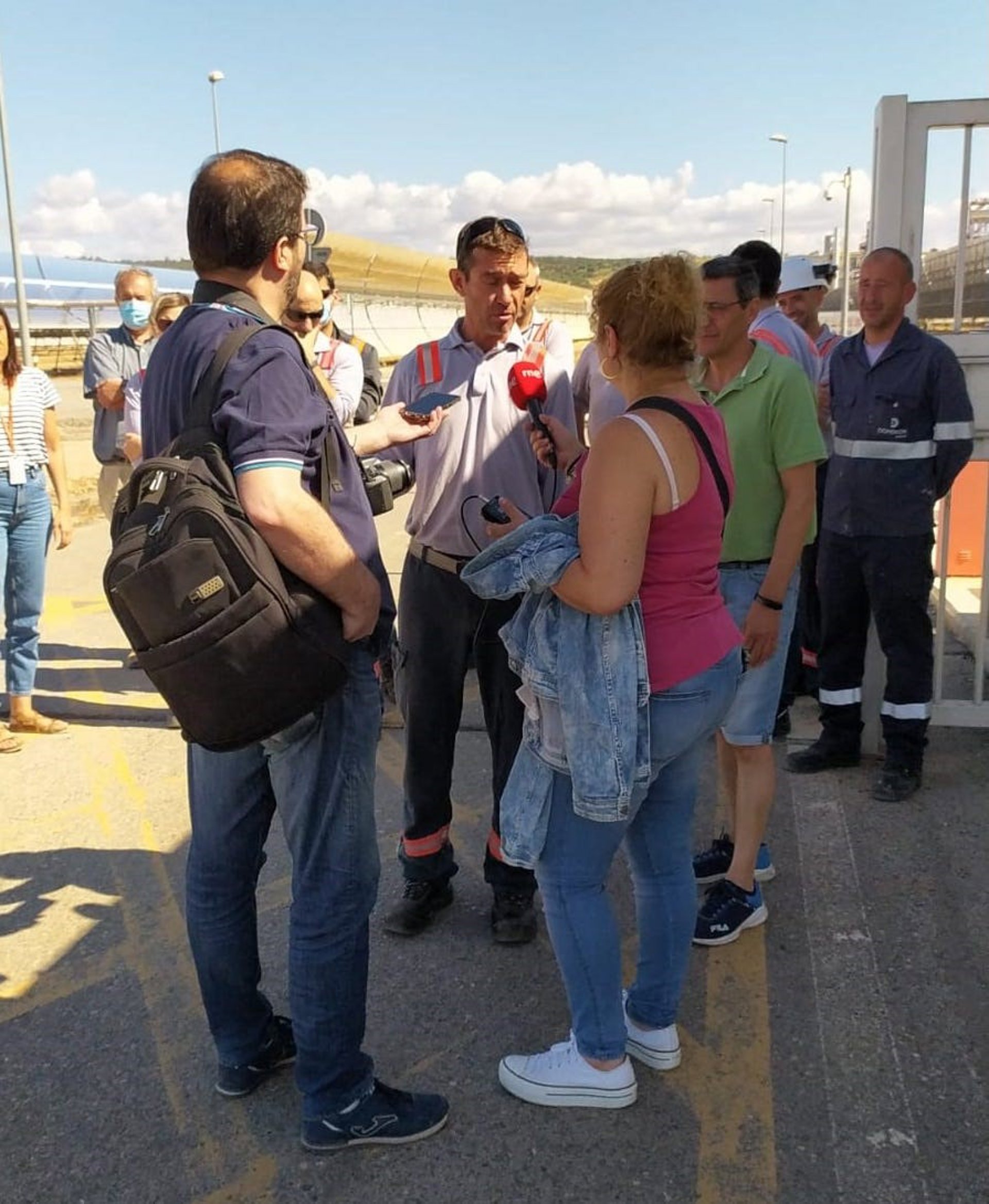 Uno de los trabajadores de Abengoa en El Carpio atiende a los medios durante la concentración. - UGT