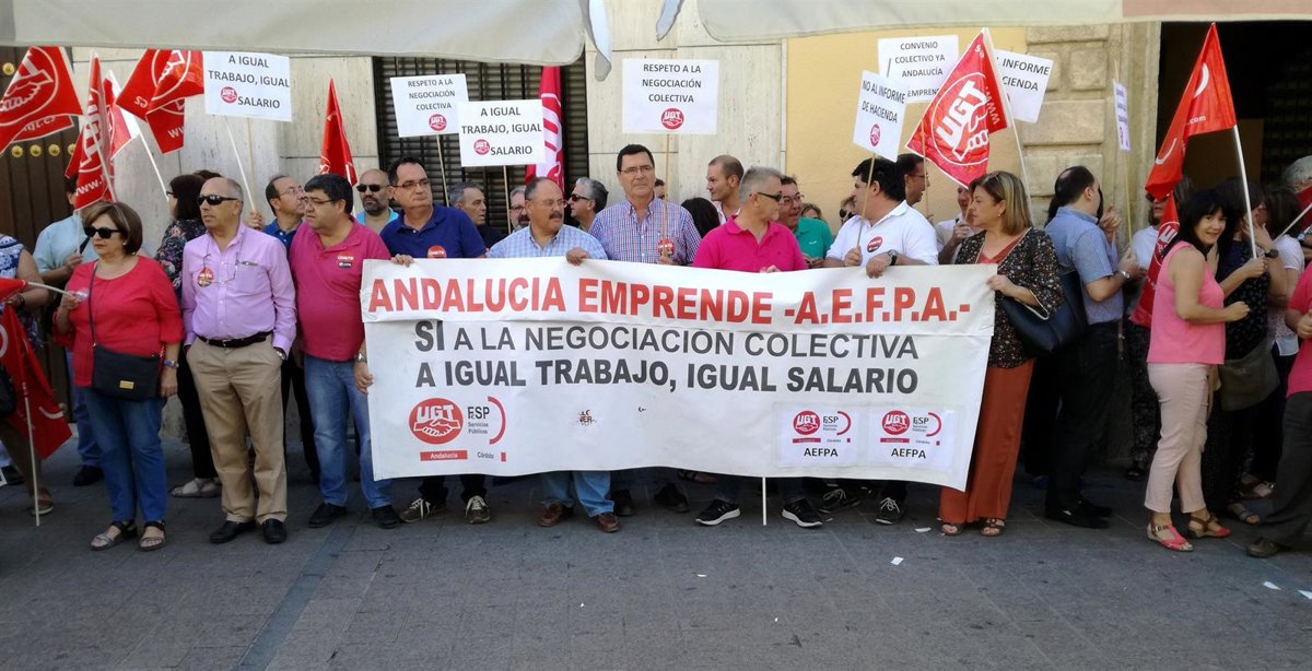 Por su parte, la Federación de empleados de los Servicios Públicos (FeSP) de UGT-Córdoba ha movilizado este pasado viernes a los trabajadores de Andalucía Emprende para alcanzar la equiparación salarial ante la "pasividad e incapacidad" de la Junta de Andalucía para resolver un conflicto que "dura ya más de ocho años".