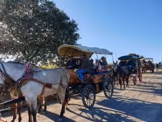 Los carruajes, principal novedad de este año, se han concentrado en el entorno de la Carretera de la Cadena en Andújar sobre las 7.00 horas y a las 9,00 de la mañana ya habían alcanzado el entorno de la Ermita de San Ginés.
