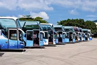 Imagen de archivo de autobuses estacionados. - FEDINTRA