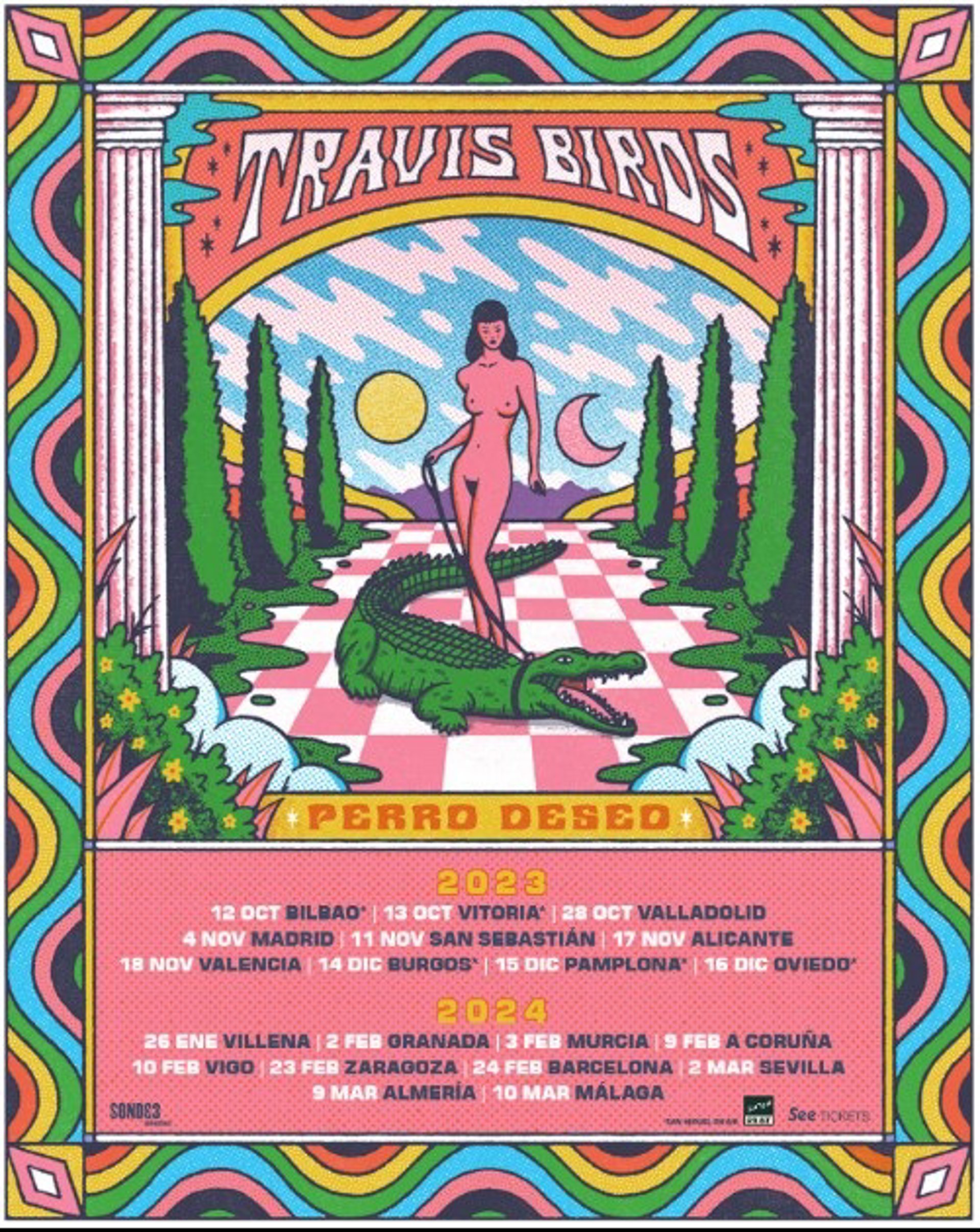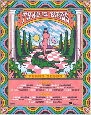 Travis Birds lanzará su nuevo disco 'Perro Deseo' el próximo mes de octubre, y lo presentará el 2 de marzo en Sala Custom (Sevilla), el 9 de marzo en Berlín Social Club (Almería) y el 10 de marzo en La Cochera Cabaret (Málaga) del próximo año 2024.