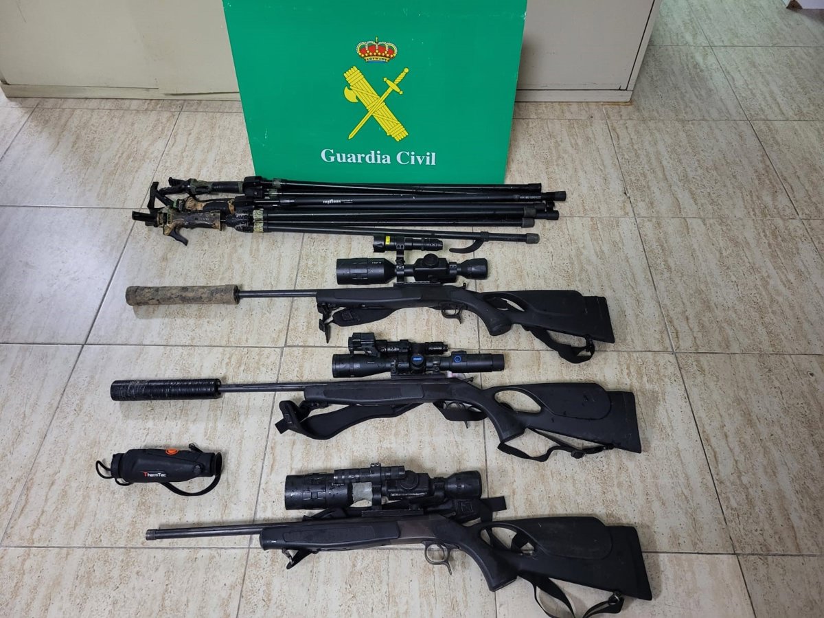 Durante la actuación por parte de los agentes del Eprona, se procedió a levantar las correspondientes actas por los hechos observados, así como a la aprehensión de los medios utilizados (rifles, silenciadores, visores térmicos y nocturnos).
