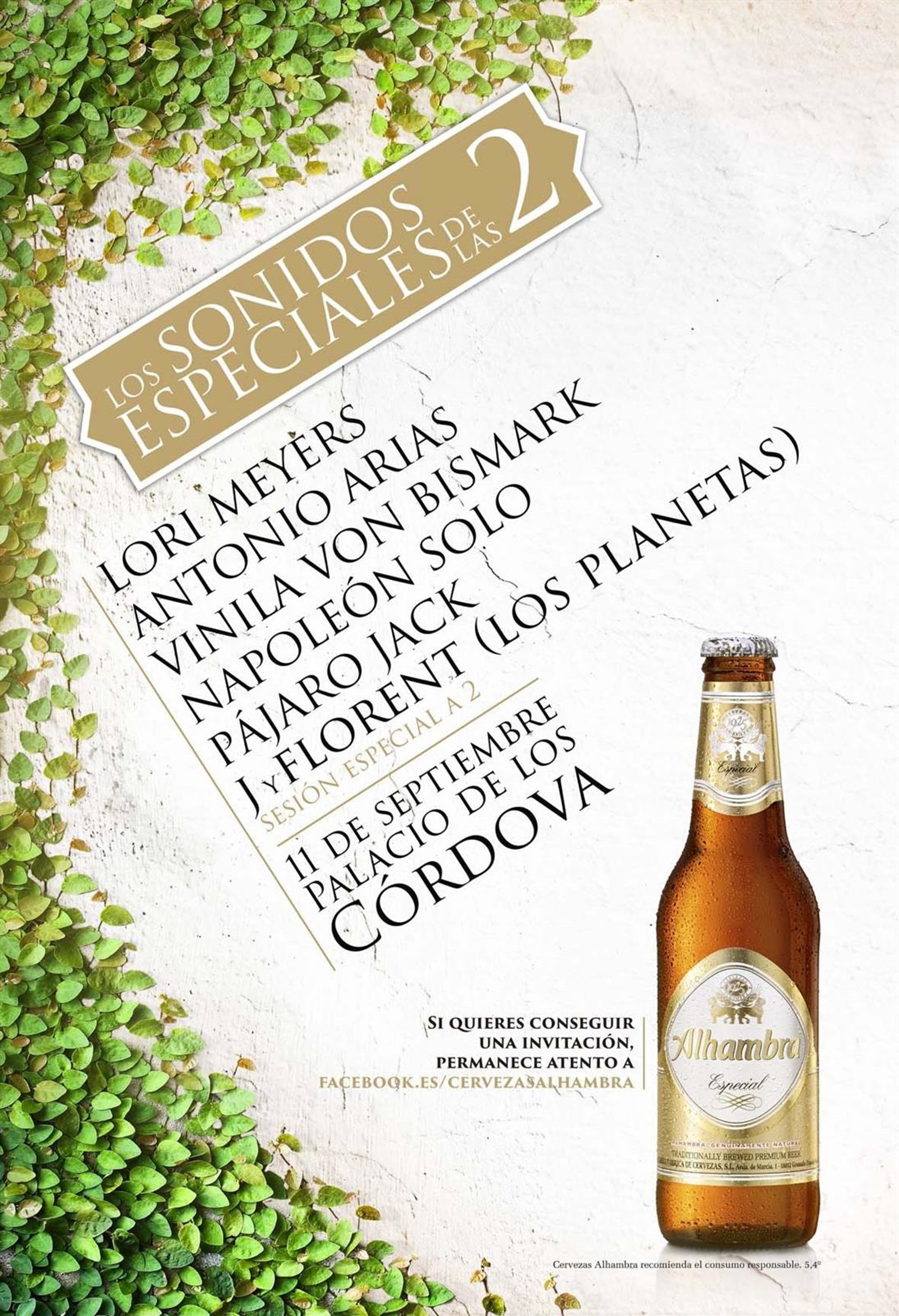 Los músicos granadinos 'Lori Meyers', Antonio Arias, Vinila Von Bismark, 'Napoleón Solo', 'Pájaro Jack' y J y Florent (Los Planetas) componen el cartel del festival 'Los Sonidos Especiales de las 2' que se celebra el próximo 11 de septiembre a los pies de la Alhambra.