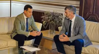 El presidente de la Junta de Andalucía, Juanma Moreno, con el secretario general de UGT Andalucía, Óskar Martín. - UGT ANDALUCIA