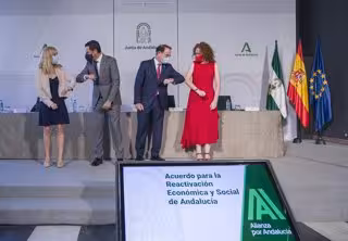 Así se han pronunciado en un comunicado conjunto tras el plan de apoyo a pymes y autónomos firmado este mediodía en el Palacio de San Telmo por Moreno con el presidente de la Confederación de Empresarios de Andalucía (CEA), la Federación Nacional de Organizaciones de Autónomos (ATA), Lorenzo Amor; y las Cámaras de Comercio de Andalucía, Javier Sánchez Rojas, que incluye medidas y ayudas por un valor global de 667 millones de euros.