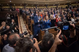 El recién nombrado presidente del Gobierno, Pedro Sánchez, es aplaudido tras finalizar la segunda sesión del debate de investidura. Imagen de archivo. - Eduardo Parra - Europa Press