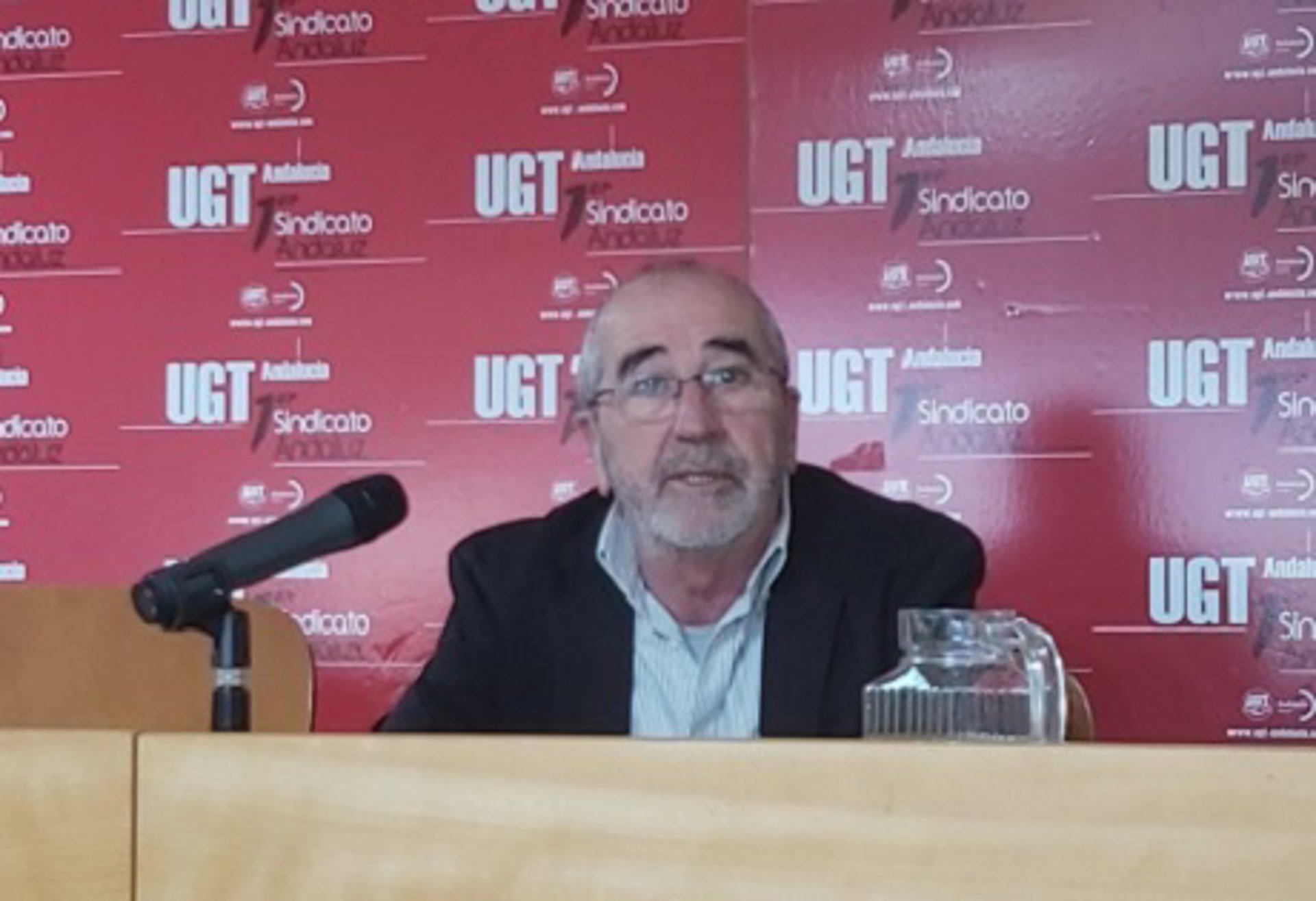 El secretario de Política Sindical, Salud Laboral y Medio Ambiente de UGT Andalucía, Juan Carlos Hidalgo, este lunes en rueda de prensa. - UGT