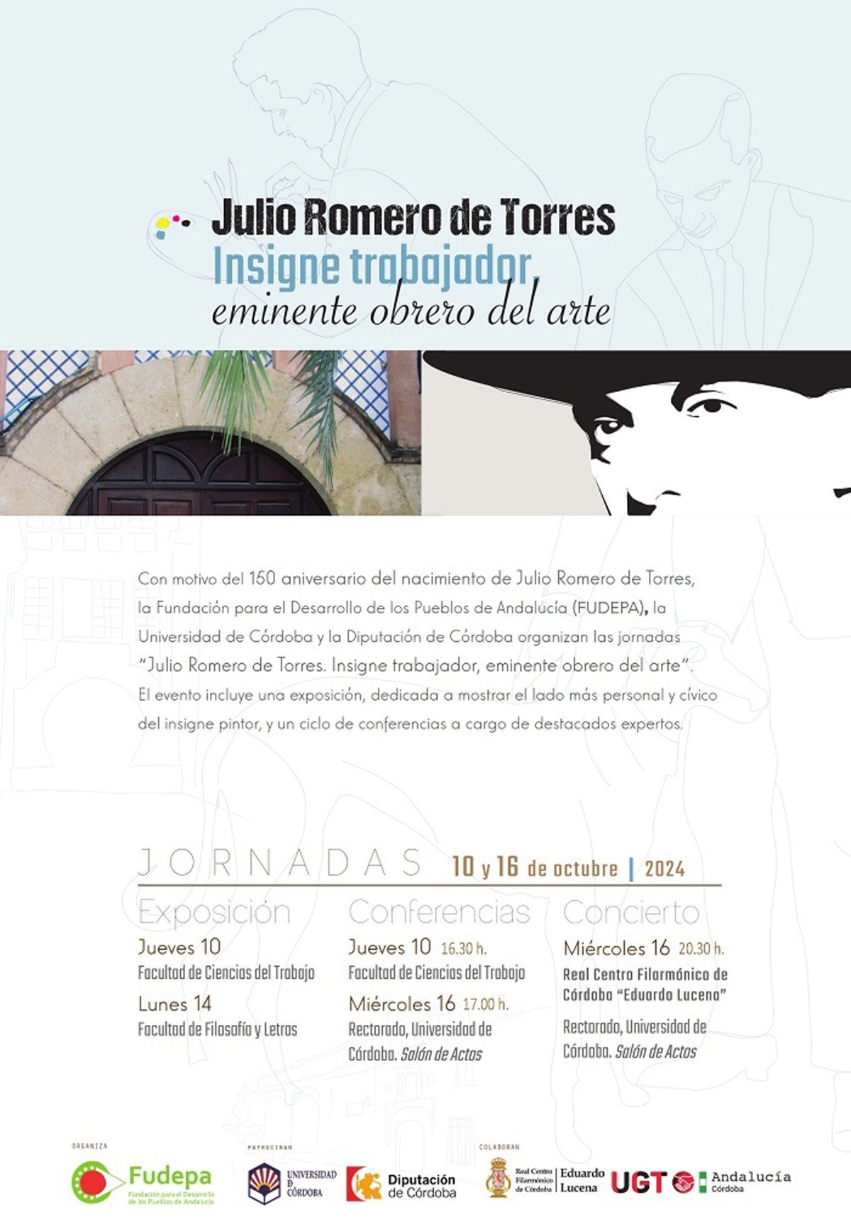A este respecto, el secretario general de UGT Andalucía y presidente de Fudepa, Oskar Martín, ha señalado que Julio Romero de Torres "no solo es un icono de la pintura cordobesa, sino también un hombre comprometido con la realidad social, política y cultural de su tiempo. Estas jornadas nos permitirán descubrir la faceta más humana de su figura, resaltando su relación con la clase trabajadora. Es un privilegio para Fudepa organizar este evento en su honor, destacando su importante contribución al arte y a la sociedad"