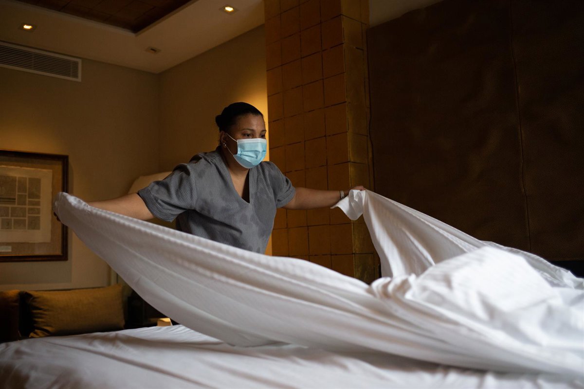 Archivo - Una camarera de pisos cambia las sábanas de una cama de una habitación de hotel. - David Zorrakino - Europa Press - Archivo
