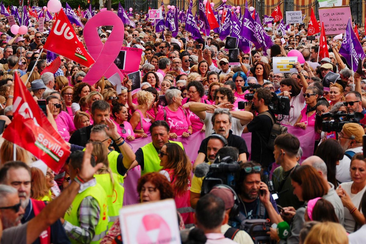 El secretario general de UGT Andalucía, Oskar Martin, ha pedido al presidente de la Junta de Andalucía, Juanma Moreno, que "tome nota" tras la concentración de miles de personas (más de 8.500 según la Subdelegación del Gobierno en Sevilla y 4.500 según la Policía Local) para reclamar "respuestas" a los fallos del cribado del cáncer de mama y para exigir más recursos para la sanidad pública.