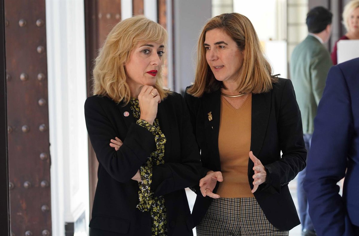 La secretaria general de UGT-A, Carmen Castilla (1i) junto a la consejera de Empleo, Rocío Blanco (2i) ). En el Palacio de San Telmo, Sevilla 18 de febrero del 2020 - Eduardo Briones - Europa Press - Archivo