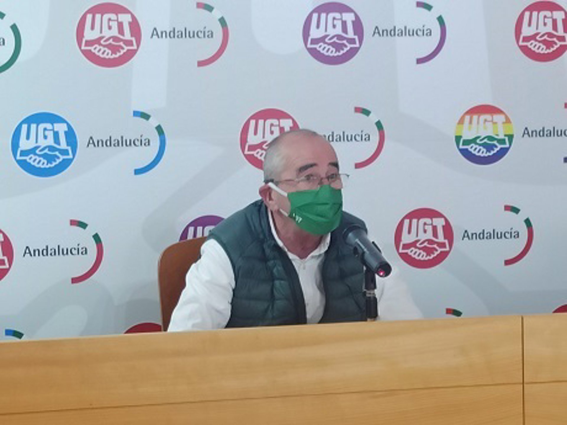 El secretario de Política Sindical, Salud Laboral y Medio Ambiente de UGT Andalucía, Juan Carlos Hidalgo, este jueves en rueda de prensa. - UGT-A
