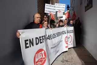 La Sección Sindical de UGT en la Delegación de Cultura, Turismo y Deporte de la Junta de Andalucía en Córdoba ha protestado este martes, con esta concentración a las puertas de la Sinagoga, por su reapertura "en una situación de absoluta precariedad de personal", por lo que ha demandado "la urgente modificación de la Relación de Puestos de Trabajo (RPT)" de dicho monumento, "en aras de su buen funcionamiento, un mejor servicio y una óptima atención a los visitantes".