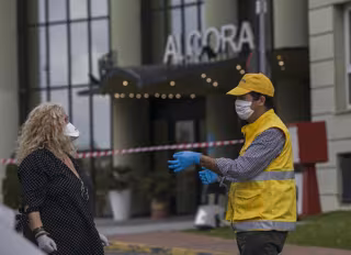Personal sanitario en el Hotel Alcora de Sevilla tras ser adaptado como hospital para recibir pacientes con coronavirus. En Sevilla, (Andalucía, España), a 30 de enero de 2020. - María José López - Europa Press