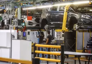 Archivo - Imagen de archivo de dos trabajadores con un vehículo en una fábrica. - Rober Solsona - Europa Press - Archivo