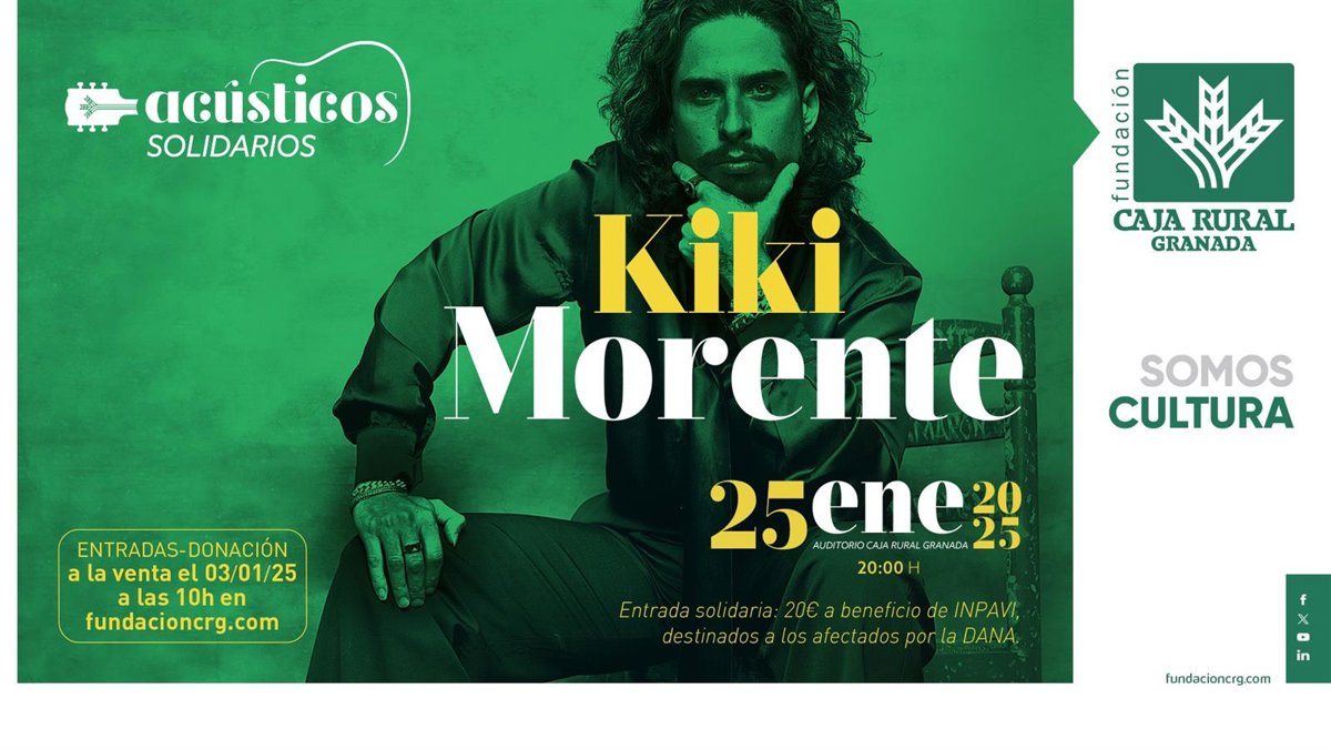 Fundación Caja Rural Granada ha informado de que quedan las últimas entradas para disfrutar del concierto solidario de Kiki Morente organizado por la entidad para el próximo sábado 25 de enero en el Auditorio de Servicios Centrales para ayudar a las familias afectadas por la Dana.
