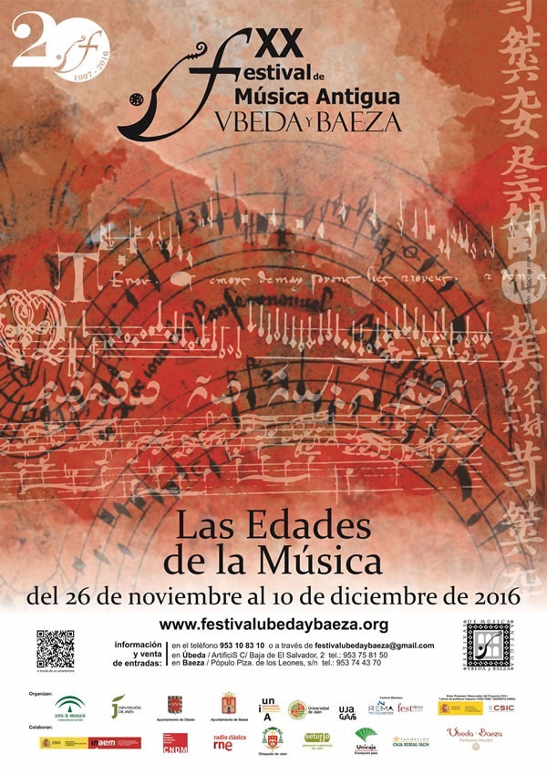 El Festival de Música Antigua de Úbeda y Baeza nació en 1997 con el propósito de sumar un encuentro musical a los atractivos artísticos y culturales de ambas ciudades declaradas Patrimonio de la Humanidad en 2003. La historia de este evento va unida al paisaje urbano de las dos localidades y a los espacios renacentistas más emblemáticos que le sirven de auditorio.