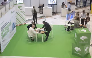 Unicaja Banco cuenta con un stand propio en el Alhambra Venture, concretamente en el área de Networking, donde distintos emprendedores y start-ups pueden dar a conocer sus proyectos.