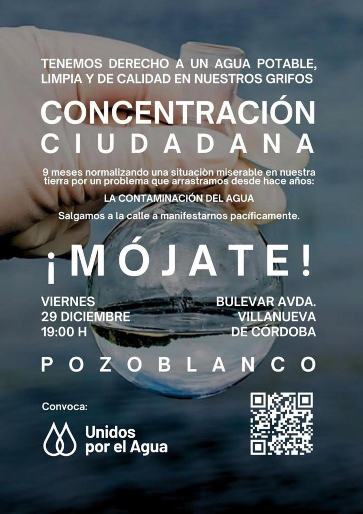 Cartel de la concentración convocada por Unidos por el Agua en Pozoblanco para reclamar el 'derecho a un agua potable, limpia y de calidad' en los grifos del Norte de Córdoba. - 'UNIDOS POR EL AGUA'