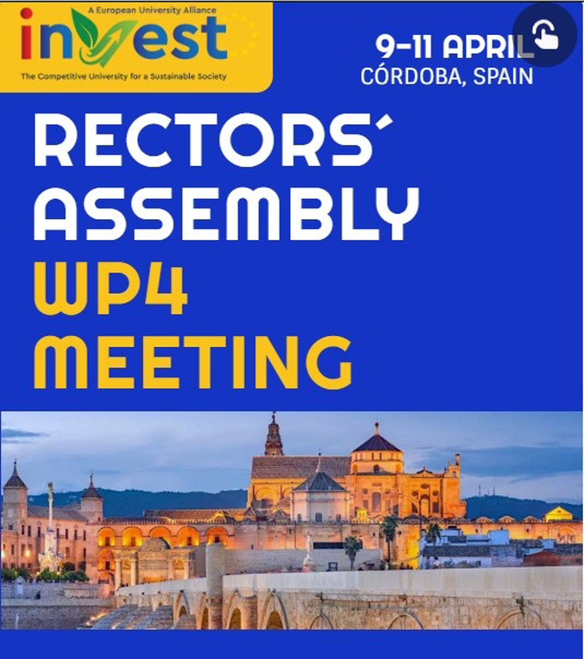 Cartel de la Asamblea de Rectores de la Alianza Europea Invest, que se celebra desde este miércoles 9 de abril en la Universidad de Córdoba. - UCO