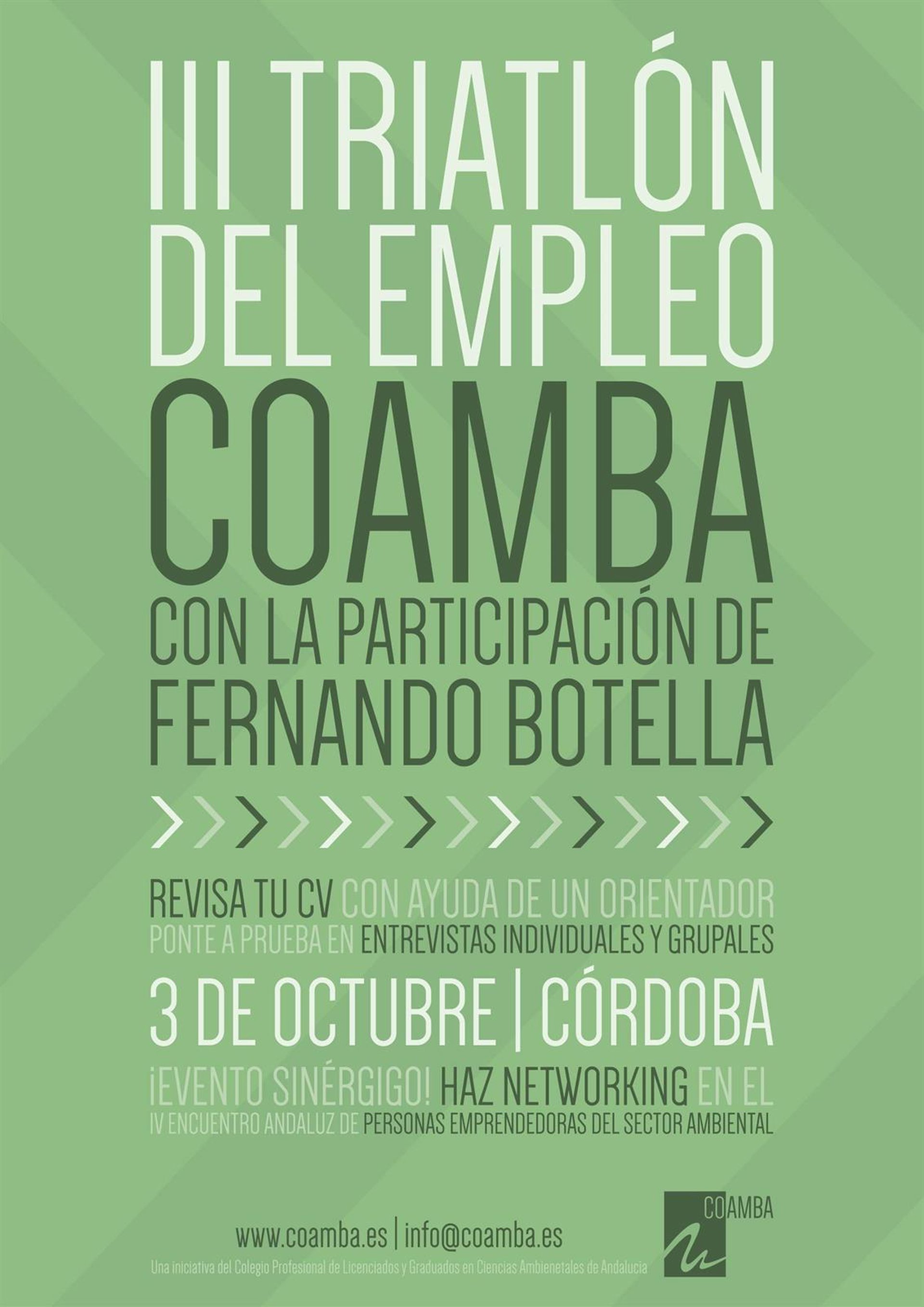 El Colegio Profesional de Licenciados y Graduados en Ciencias Ambientales de Andalucía (Coamba), en su afán por potenciar la cultura emprendedora y favorecer el autoempleo dentro de la economía verde, organiza la celebración en el Rectorado de la Universidad de Córdoba (UCO) este sábado del IV Encuentro Andaluz de Personas Emprendedoras del Sector Ambiental y el III Triatlón' del Empleo Verde.