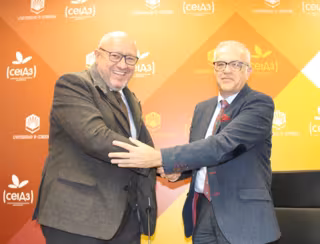 Manuel Torralbo y Fidel Astudillo tras la firma del convenio. - UCO