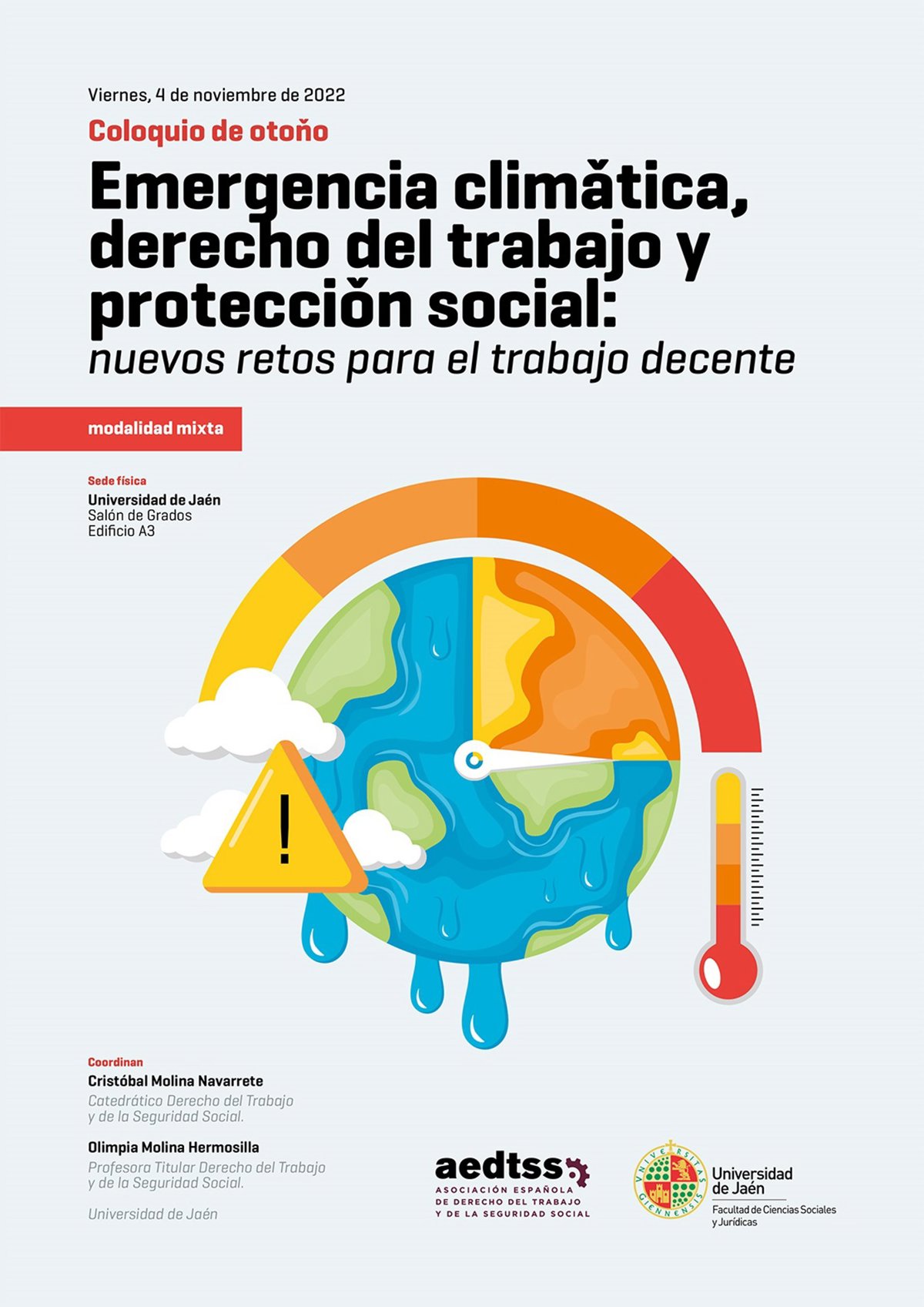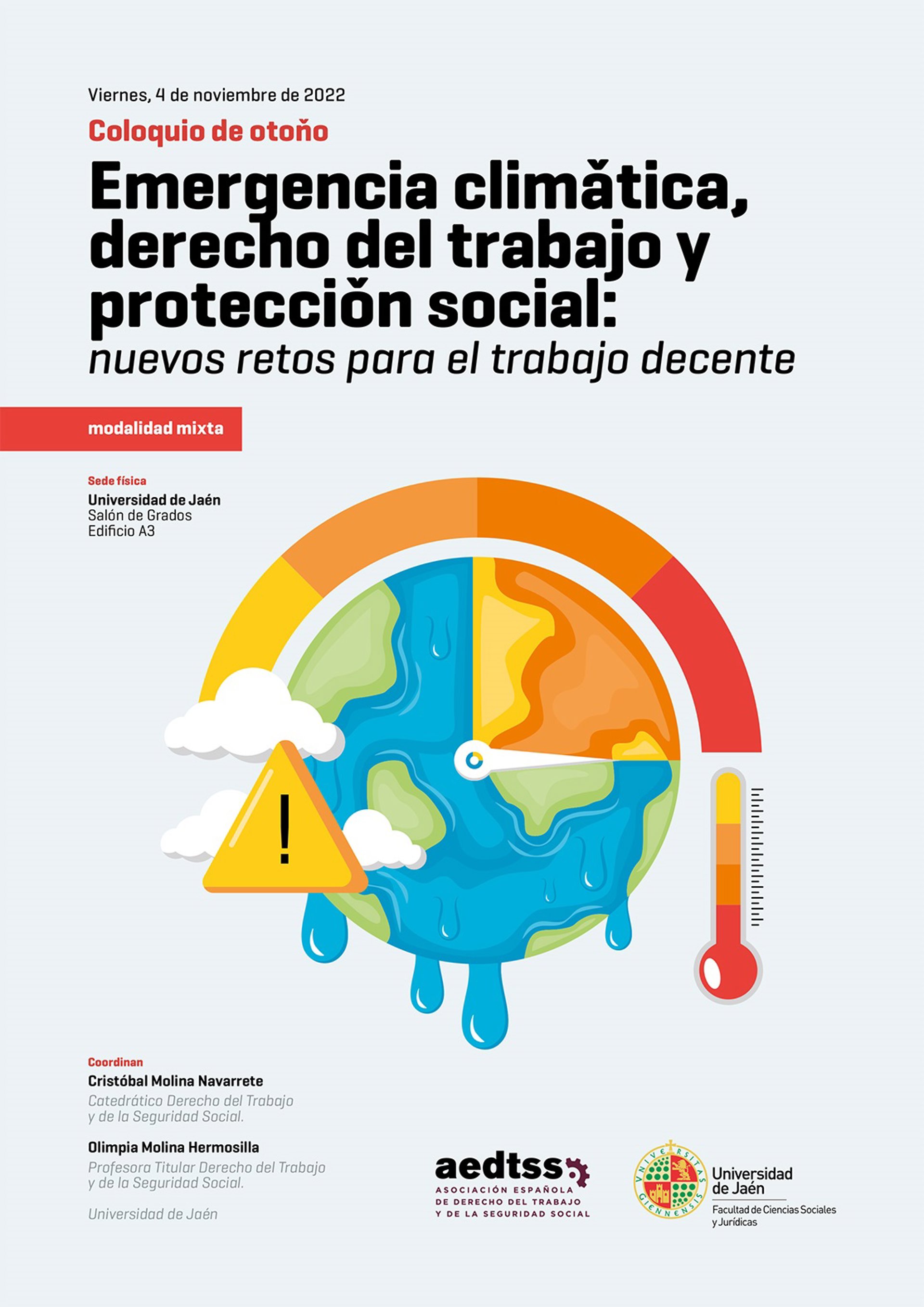 La Universidad de Jaén (UJA) acogerá el próximo 4 de noviembre la celebración del coloquio de otoño sobre 'Emergencia climática, derecho del trabajo y protección social: nuevos retos para el trabajo decente'.