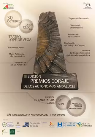 UPTA Andalucía ha convocado la III edición de los premios Coraje de los Autónomos Andaluces para conmemorar el quinto aniversario de la firma del Pacto para la Promoción del Trabajo Autónomo en Andalucía y seguir visibilizando, promocionando y reconociendo a los trabajadores autónomos y a Andalucía "como tierra de emprendedores y bandera del diálogo y la concertación social en España".