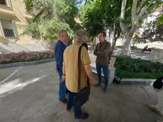 Toni Valero (1d) conversa con miembros de IU en la provincia de Jaén. - EUROPA PRESS