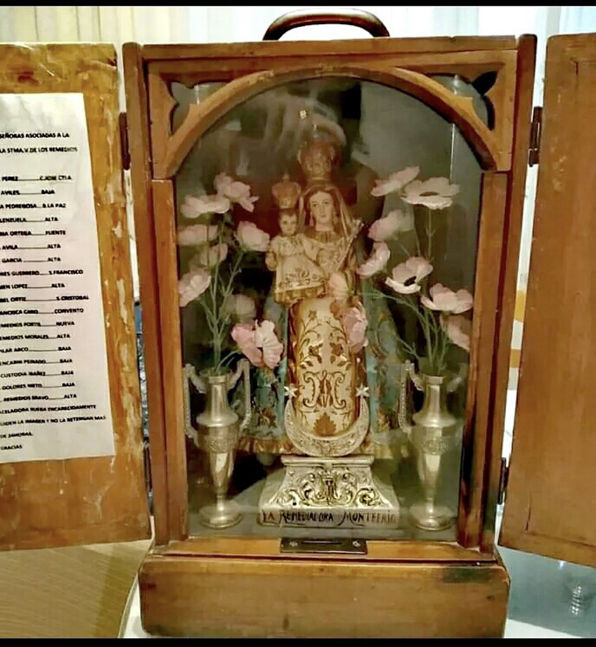 Concepción y Pilar señalan que la talla "es muy antigua, y desde hace más de un siglo cada noche ha dormido en una casa diferente, hasta que comenzó la pandemia y le perdimos la pista". Por eso piden ayuda a los montefrieños: para que la Virgen de los Remedios aparezca de nuevo y vuelva a visitar las casas de sus devotos.