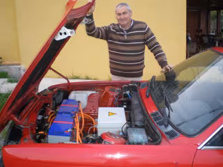 Jesús Martín, natural de Motril (Granada), ha aprovechado el chasis de su antiguo BMW de 1989 para construir un motor eléctrico con componentes adquiridos por Internet y con una inversión total superior a los 7.000 euros. El vehículo alcanza una velocidad nominal de 140 kilómetros por hora y su dueño trata ahora de conseguir los permisos necesarios para circular con él.