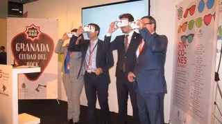 El Ayuntamiento de Granada ha presentado este miércoles en la Feria Internacional de Turismo, Fitur, en Madrid, algunas de las herramientas con las que la ciudad quiere proyectar una imagen más moderna: unas gafas especiales que permiten el visionado en 360 grados de un vídeo promocional de la capital y la vinculación de la ciudad con el rock.