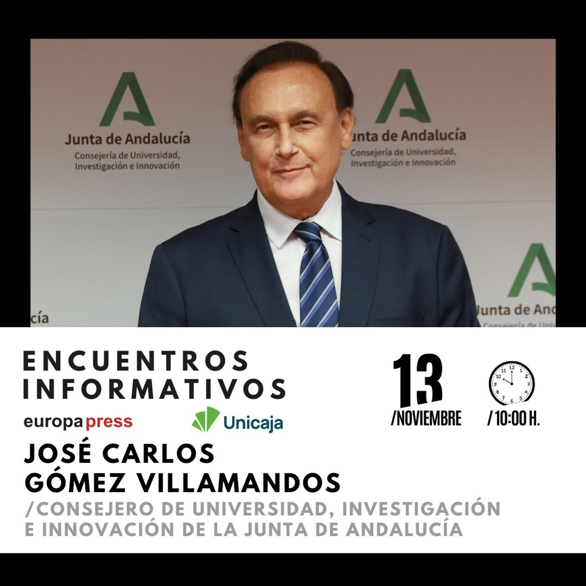 Cartel anunciador del encuentro informativo de Europa Press Andalucía con el consejero de Universidad, Investigación e Innovación, José Carlos Gómez Villamandos, el próximo 13 de noviembre en Sevilla - EUROPA PRESS