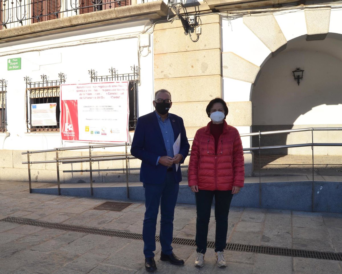 La localidad de Villanueva del Duque ha comenzado las obras del segundo proyecto conseguido, gracias a la ayuda solicitada por la Diputación de Córdoba al Instituto para la Diversificación y Ahorro de la Energía (IDAE), en el marco del programa operativo Feder Plurirregional de España (POPE) 2014-2020, y que consistirá en la rehabilitación de la envolvente térmica e instalaciones para uso térmico de la biomasa en la Casa Consistorial del municipio, cuya inversión inicial asciende a 458.025 euros.