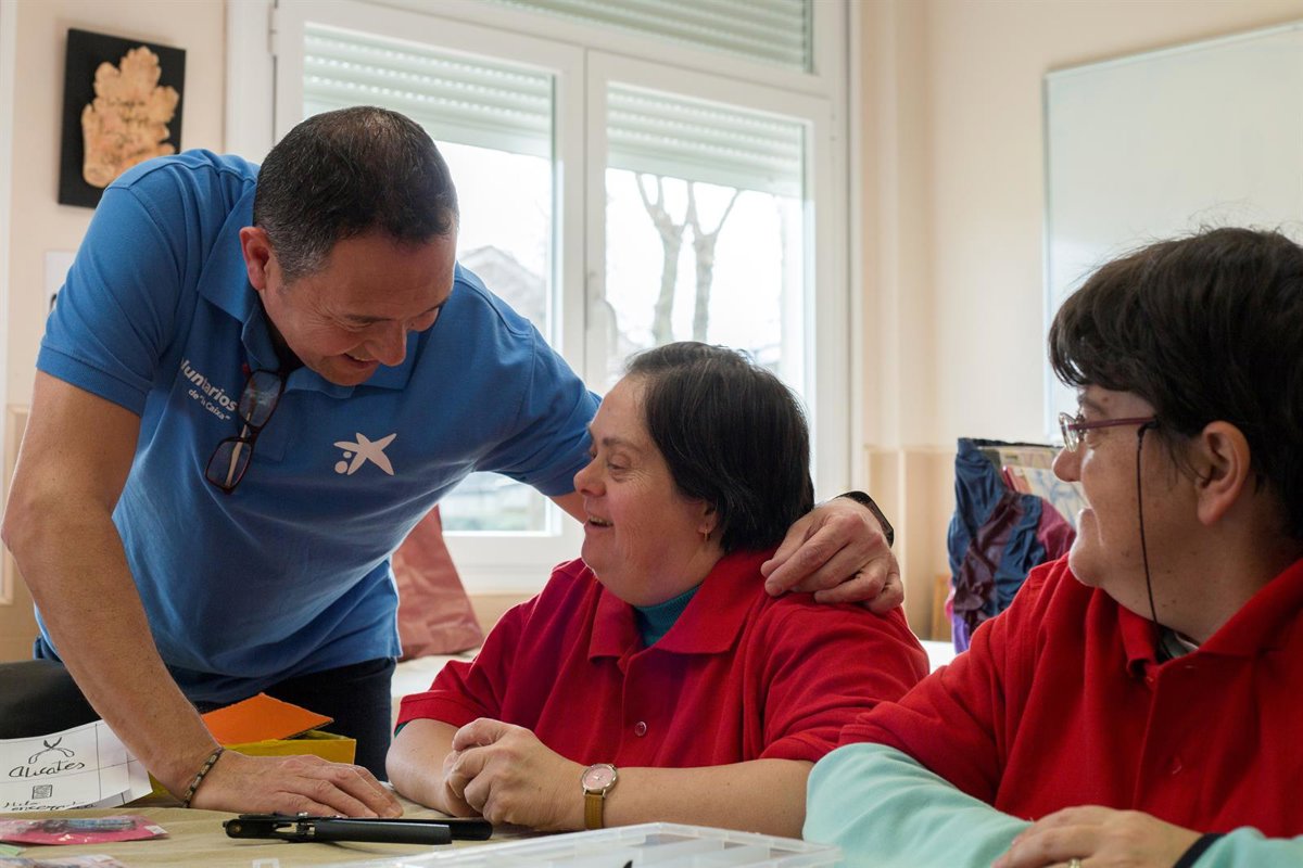 Imagen de archivo de un voluntario de La Caixa atendiendo a una persona con discapacidad. - LA CAIXA