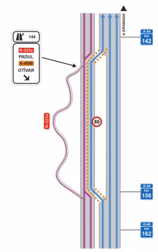 Estas medidas consisten en habilitar un carril en sentido contrario al habitual en la A-44, entre los puntos kilométricos 158+500 y 143+520, de forma que se mantengan en todo momento tres carriles de circulación entre el 169 (Izbor) y el enlace de la A-44 y la GR-30 en Otura.