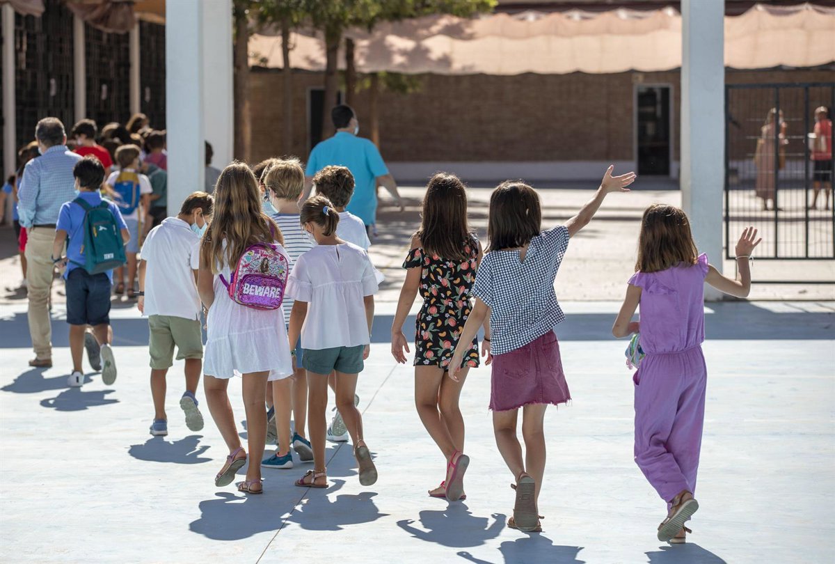 Archivo - Imagen de archivo de unos niños a la entrada de un colegio. - AYUNTAMIENTO DE HUELVA - Archivo