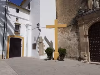Cruz por los caídos situada junto a la fachada del Convento de las Carmelitas Descalzas de Aguilar de la Frontera. - VOX