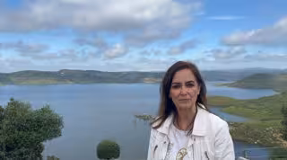 La diputada provincial de Vox en Córdoba, Yolanda Almagro, junto al pantano de la Breña II. - VOX CÓRDOBA