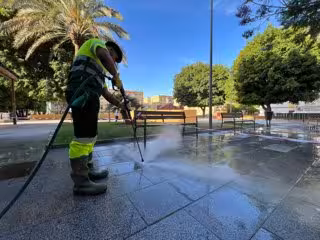 Según han explicado, se trata de "una actuación de limpieza extraordinaria y que se suma a las que habitualmente se llevan cabo para eliminar grasas, chicles y otros elementos que deterioran el pavimento, que suponen un peligro de caída y a la vez deterioran la imagen de los espacios públicos".