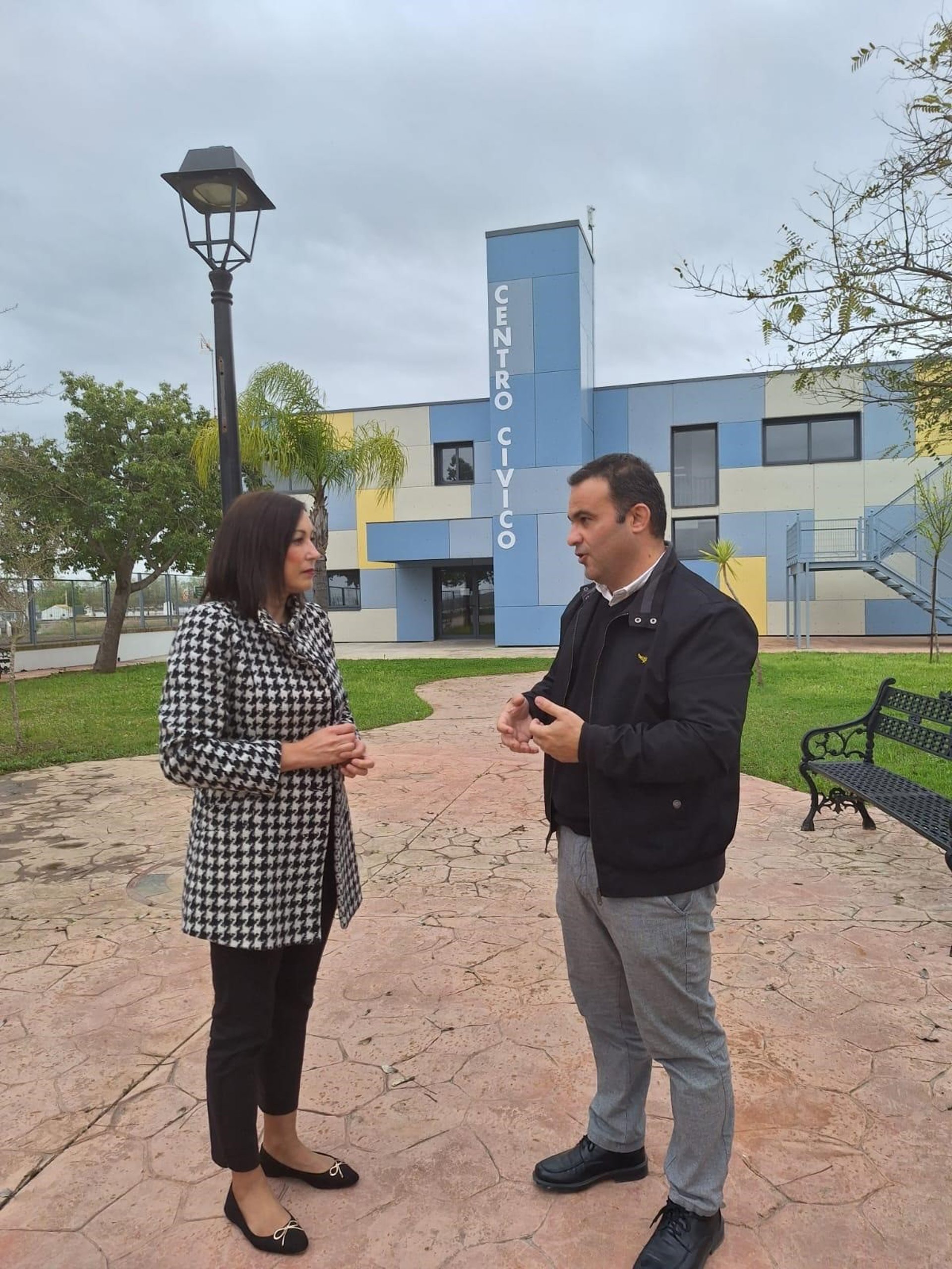 La diputada de Cohesión Territorial, Teresa García, con el alcalde de El Palmar, Juan Carlos González. - DIPUTACIÓN DE SEVILLA