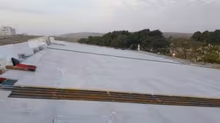 La actuación ha consistido básicamente en la impermeabilización y el aislamiento térmico de la cubierta del pabellón mediante la colocación, sobre su superficie, de una lámina sintética de poliurefina de un milímetro y medio de espesor.