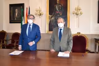 El presidente de la Autoridad Portuaria de Sevilla, Rafael Carmona, y el presidente de la asociación ProSevillaPort, Augusto Jannone, han firmado este jueves un convenio para la promoción del Puerto y el desarrollo de acciones comerciales, de investigación y formación.