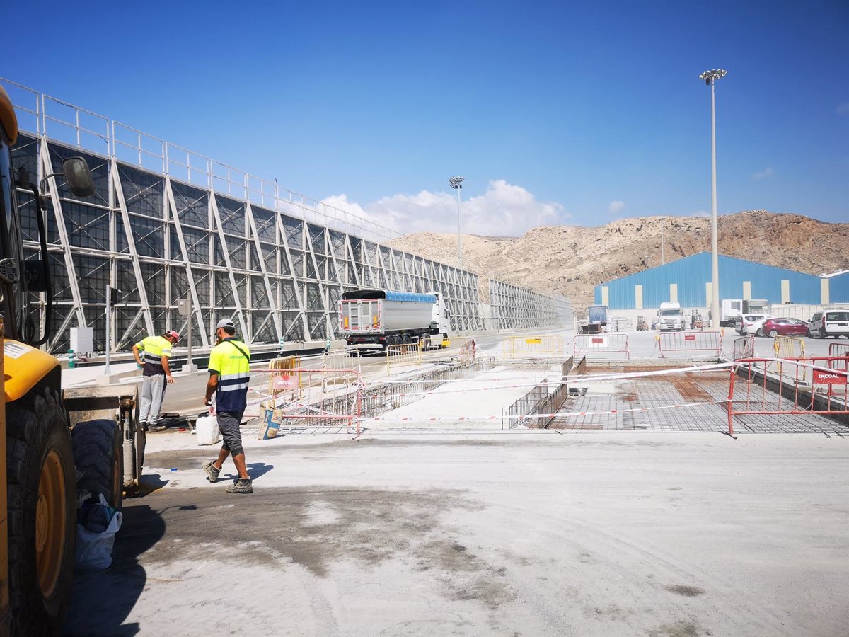 La Autoridad Portuaria de Almería (APA) avanza en las obras para la instalación de dos estaciones lava-ruedas en el Muelle de Pechina, del Puerto de la capital.