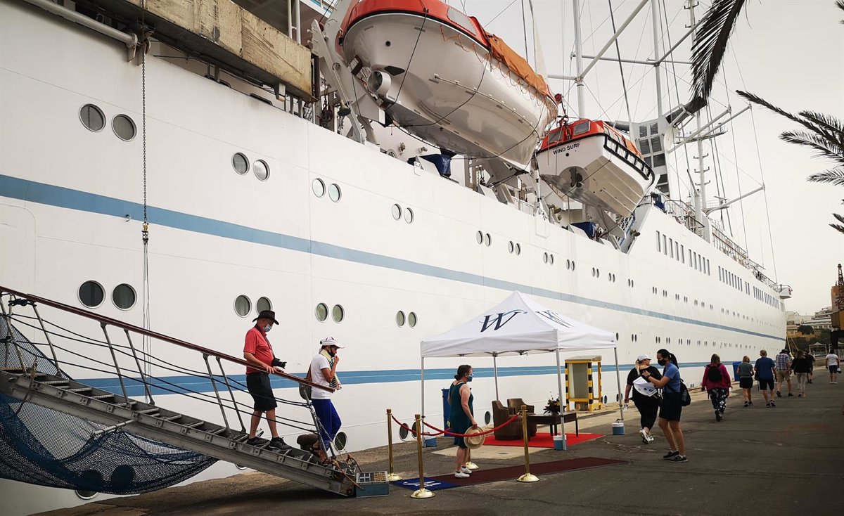 Turistas desembarcan del crucero 'Wind surf' en el Puerto de Almería. - APA