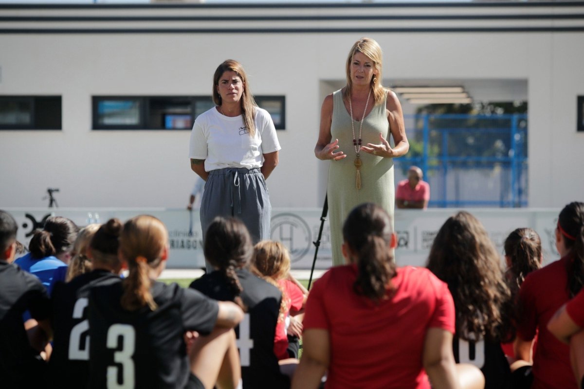 La presidenta del Puerto de Huelva, Pilar Miranda, ha participado este viernes en las Jornadas de Tecnificación de Fútbol Femenino del CF Huelva Femenino en el Polideportivo de Las Américas de Huelva. - CF HUELVA FEMENINO